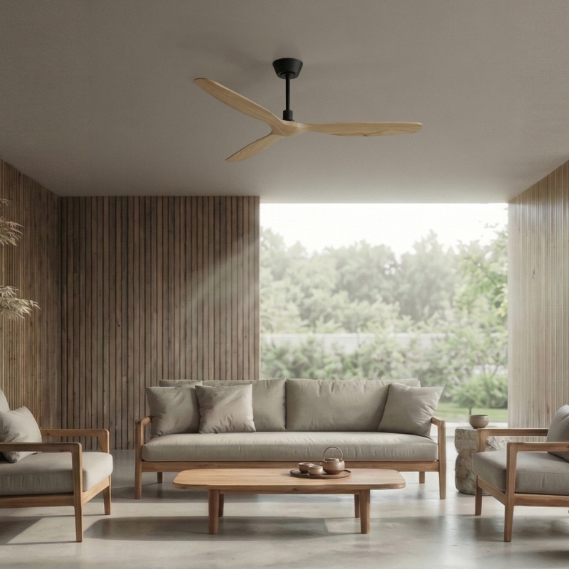 Balcony Neo 142 Black Natural Wood Outdoor Ceiling fan with DC motor by Sulion