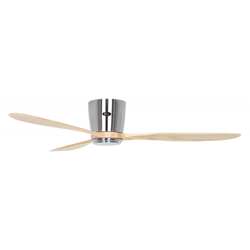 The ECO Plano Wood 132 BN-NT with DC motor & remote control by Casafan has a Brushed chrome finish and Timber blades in Natural wood.