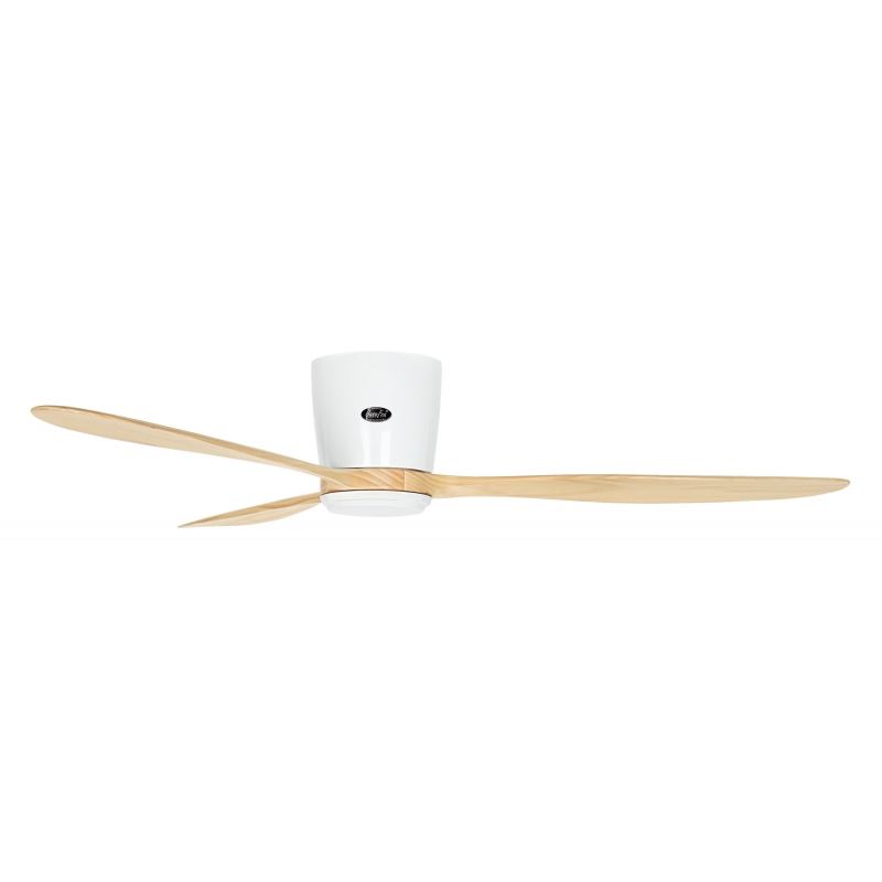 The ECO Plano Wood 132 WE-NT with DC motor & remote control by Casafan has a White finish and Timber blades in Natural wood.