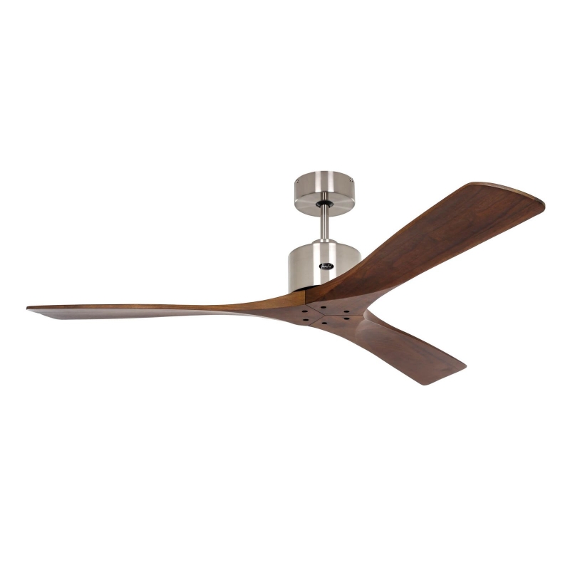 The Macau Chrome Walnut by Casafan has a Brushed aluminium finish and Timber blades in Walnut.