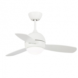 A Minimal / Design 100 cm cm ceiling fan for rooms up to 16 m². The Gull White with DC motor and LED light by Sulion has a White finish and Plastic (ABS) blades in White. With 1 x LED / 1 x 24 Watt light kit 6 speeds and winter reverse function. Remote control included